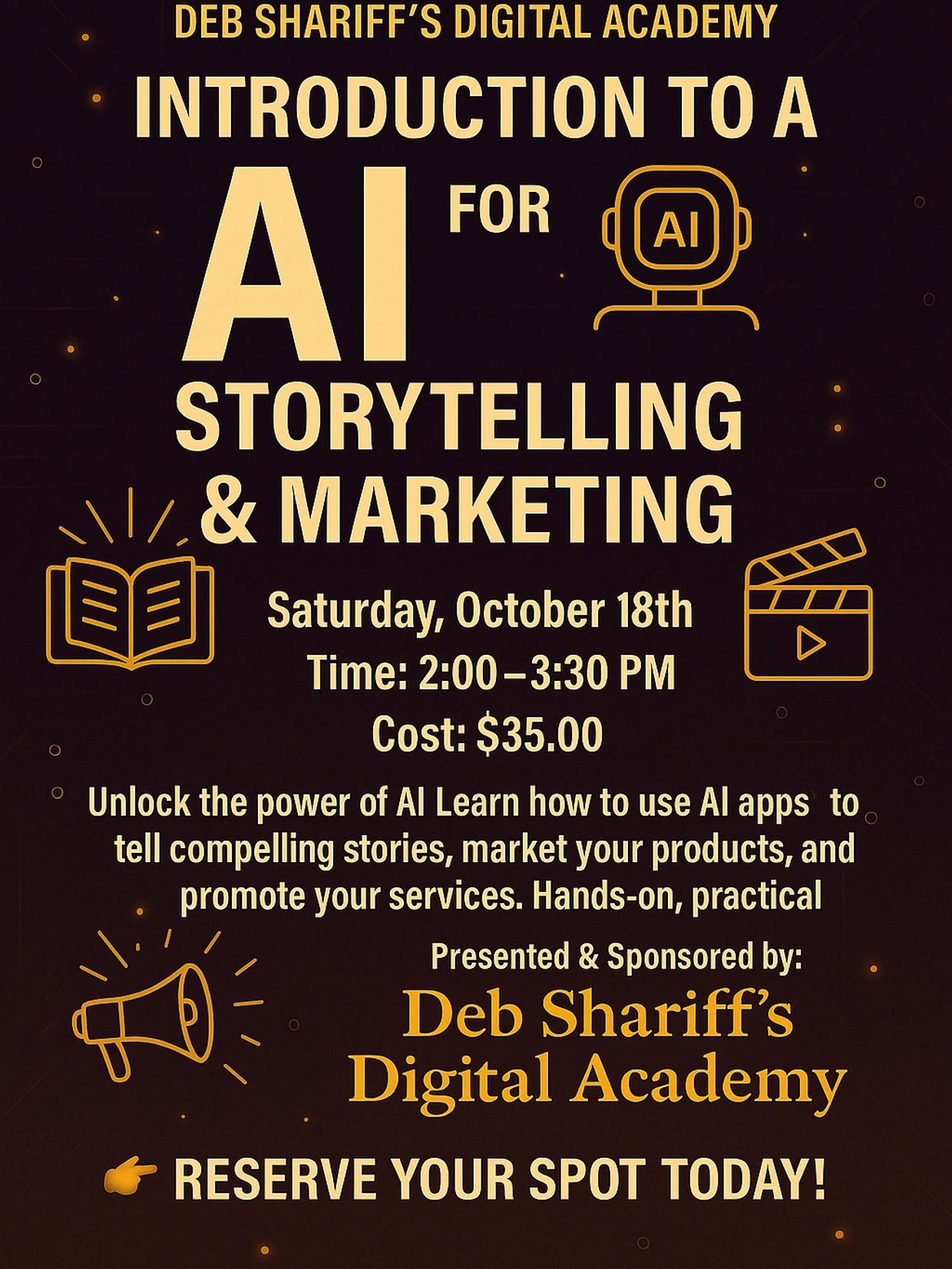 Whether you’re a beginner or experienced creator, you’ll walk away inspired, confident, and ready to harness AI to elevate your storytelling and marketing game.